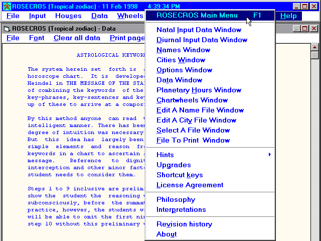 Planetary hours and Keywords screens